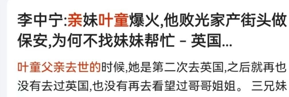 要知道,当叶童成名后,满怀期待地飞到英国见父亲时,才第一次见到这位传说中的哥哥,以及那位几乎只剩下背影的父亲。